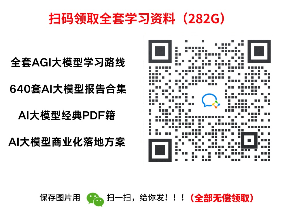 包括:大模型学习线路汇总、学习阶段,大模型实战案例,大模型学习视频,人工智能、机器学习、大模型书籍PDF。带你从零基础系统性的学好大模型!