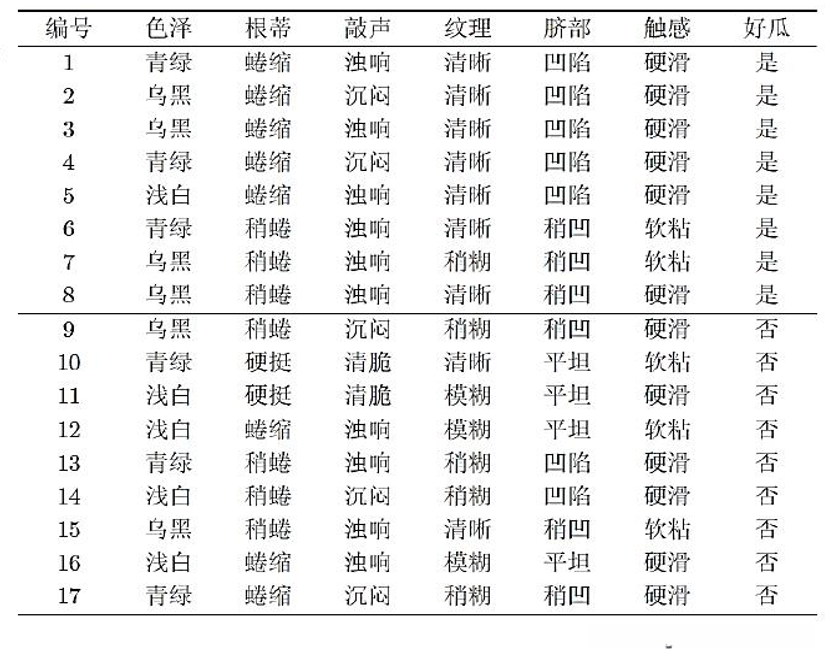 当前属性集合A={色泽,根蒂,敲声,纹理,脐部,触感}