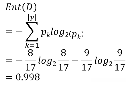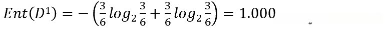 样例数p1=3/6,反例占D1样例数p2=3/6 ,因此