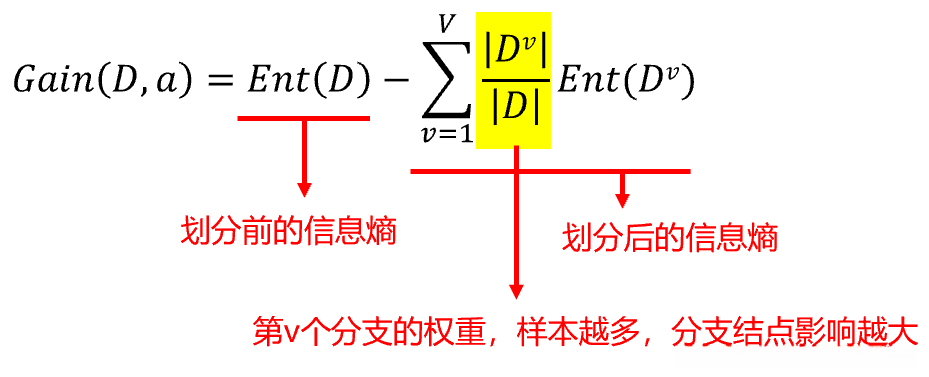 信息增益越大,意味着使用属性a来进行划分所获得的“纯度提升”越大。