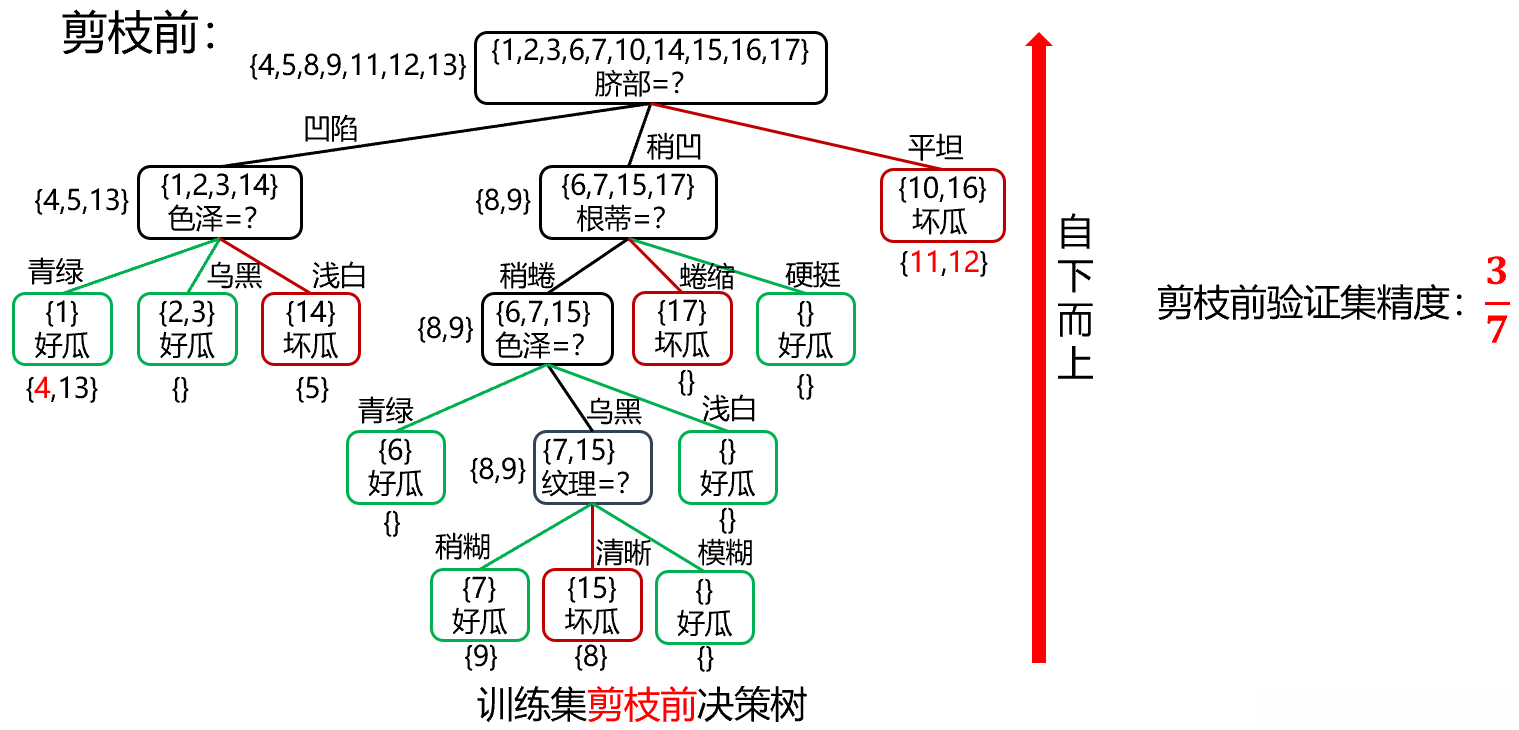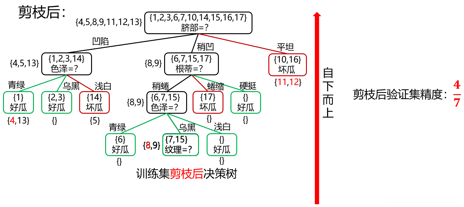 剪枝前验证集精度:3/7 < 剪枝后验证集精度:4/7