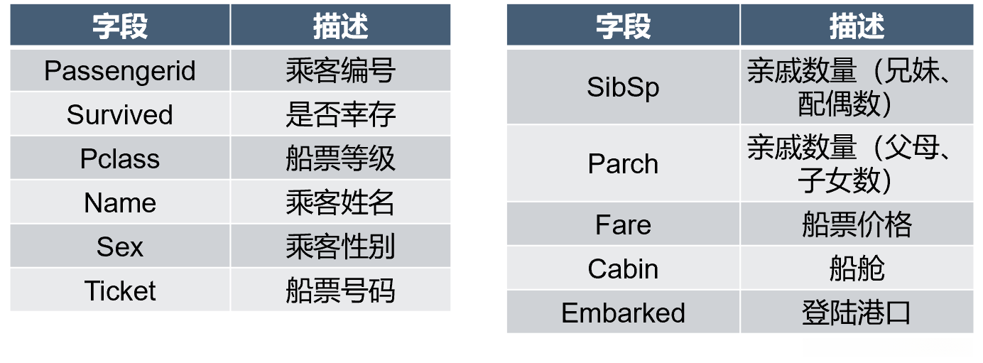 train.csv:训练数据集,包含特征信息和存活与否的标签。