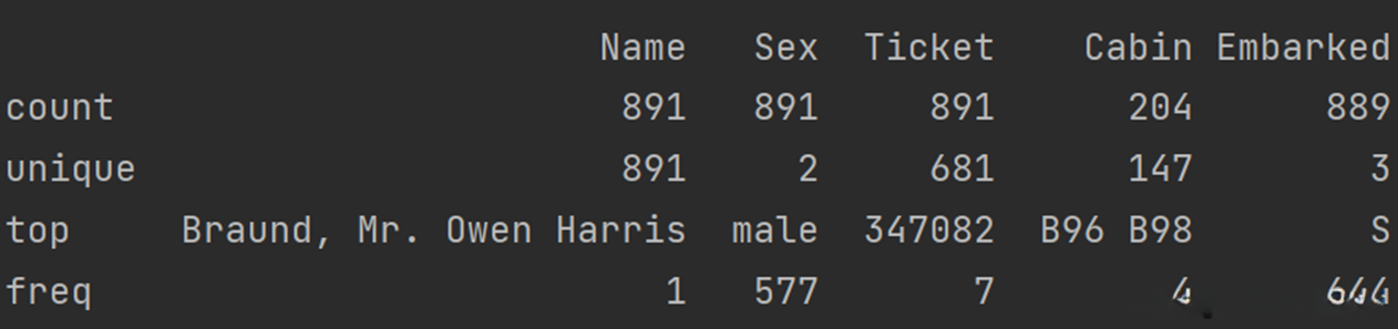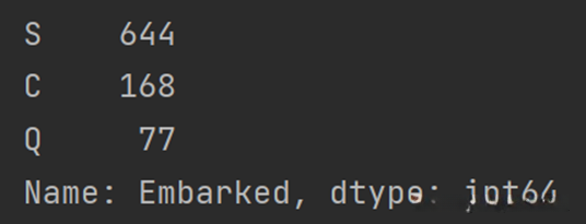 4、Embarked 为登陆港口,有少量的缺失值。将其余缺失的 Embarked 数值均设置为 S(一共3个登陆港口,S港人数最多)。