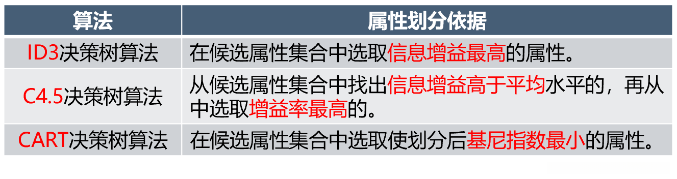 ID3决策树算法:在候选属性集合中选取信息增益最高的属性。