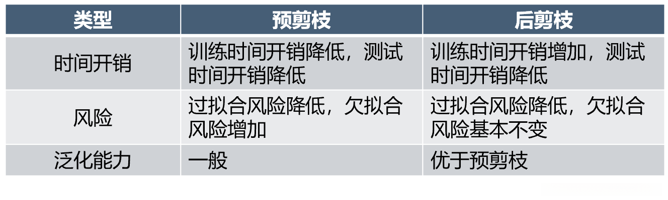 预剪枝(Pre-pruning):提前终止某些分支的生长(自上而下)。