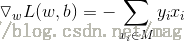 所以建议我们采用所有被错误分类的点到超平面总距离之和作为损失函数(其中M代表被错误分类的数据集合):