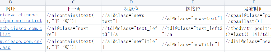 0.1 网站URL地址,请查找元素定位(XPATH的用法请参考这篇相关文章),由于需要爬取多个网站的配置信息,请将这些配置保存到Excel文件中。