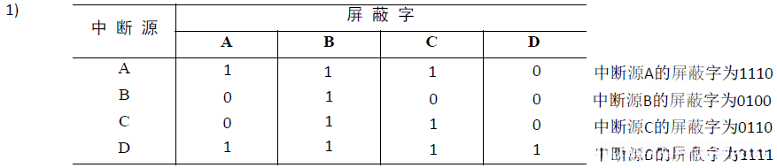 |中断屏蔽技术|概念|中断屏蔽技术主要用于多重中断,CPU要具备多重中断的功能,须满足下列条件。 ① 在中断服务程序中提前设置开中断指令 ② 优先级别高的中断源有权中断优先级别低的中断源 每个中断源都有一个屏蔽触发器,1表示屏蔽该中断源的请求,0表示可以正常申请,所有屏蔽触发器组合在一起,便构成一个屏蔽字寄存器 ,屏蔽字寄存器的内容称为屏蔽字。||