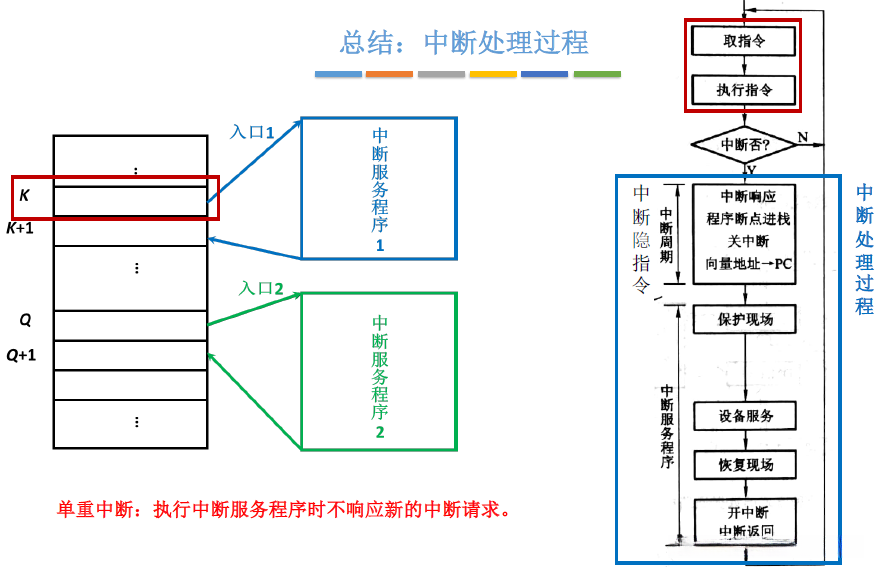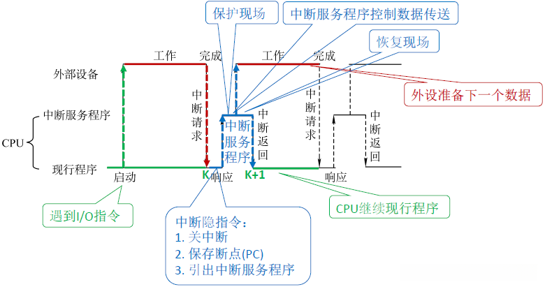 | 中断返回 | 通过中断返回指令回到原程序断点处 |