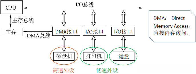 | 注 | DMA接口,即DMA控制器,也是一种特殊的I/O控制器 |