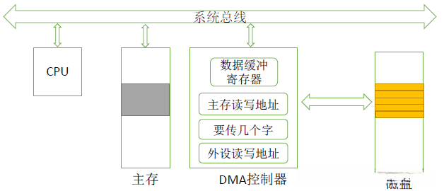 | 背景 | 由于中断方式,每一次I/O设备准备好一个字的数据,CPU就要运行一次中断处理程序,把这个字的数据转存到主存当中,对于速度快的I/O设备来说,频繁中断,就会有很大的时间开销,效率低 | ||