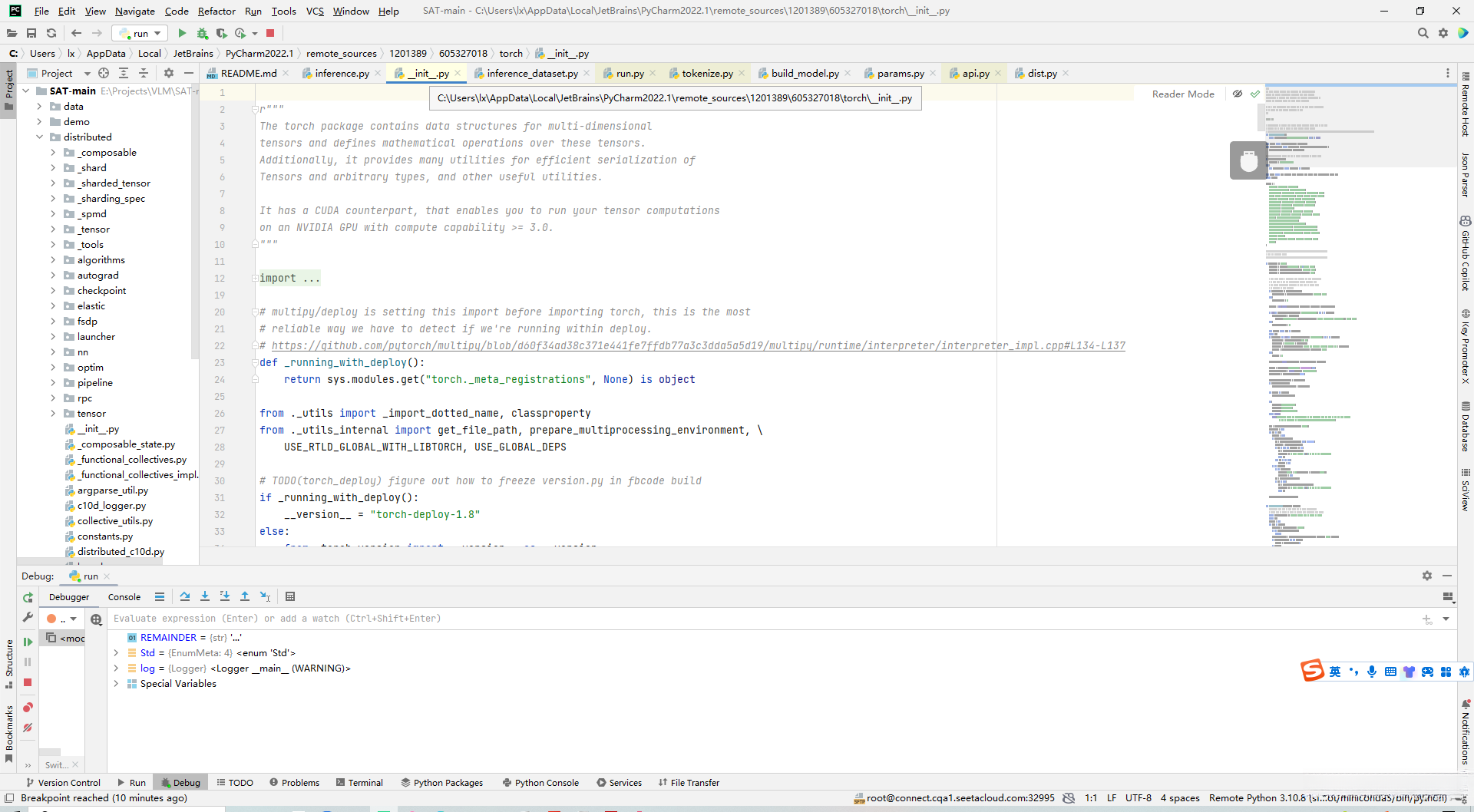 1. 找到torch.distributed下面的run.py文件,记住是在本地的位置。通常情况下我的办法是在import torch那里ctrl+点击torch就能够知道torch的init.py文件的位置