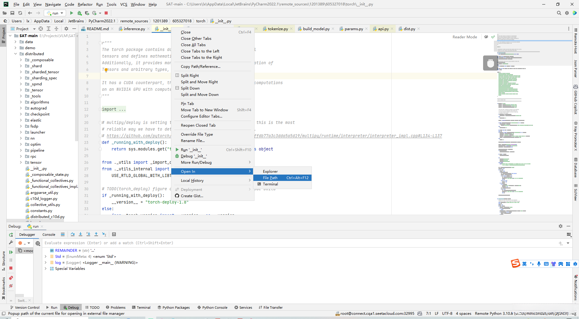2. 右键,点击Open in,然后filepath,就可以顺利索引到torch文件的位置