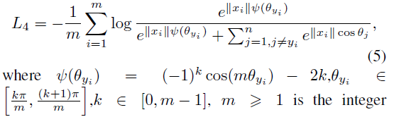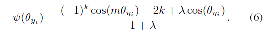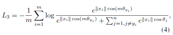 m是一个不小于1的整数,在调节角边界尺寸的过程中发挥重要作用。但是,在其中应用sphereface时,则采用了softmax监督机制以确保训练过程具有良好的收敛性;该权重采用的是动态超参数配置策略