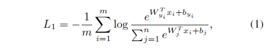 在其中,在样本i中被定义为其深度特征i,并归入对应的类别i;在此基础上,在这一过程中将该空间设定为512维的空间;在此过程中权重矩阵W中的第j列对应着全连接层的最后一层权重向量w_j;在此情境下常数b被视为偏置项;在此情形下常数m代表batchsize而n代表分类器的数量