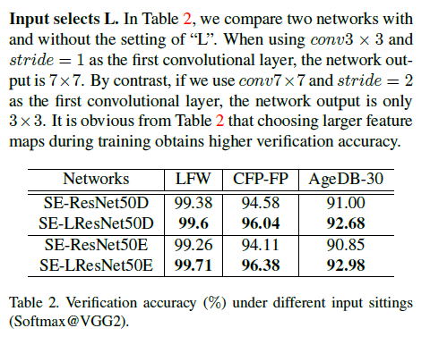 为了训练本研究中的模型架构,在VGG-2网络基础上结合Softmax函数作为目标分类损失函数的前提下,并采用多种网络结构进行人脸验证性能评估