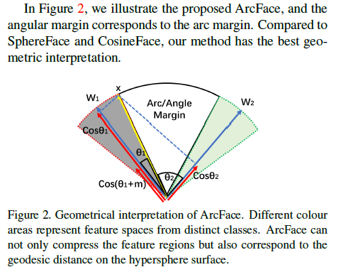 尽管余弦边界在从余弦空间到角空间的过程中形成了一一对应的关系,在此过程中形成的两个边界面之间仍存在差异。相比之下,角度边界的几何意义更为直观,在超球面流形上的界线对应于arc距离这一概念上比传统方法更为清晰和明确。我们增加了角边界的m参数,并将其引入到了现有的模型架构中进行优化和测试