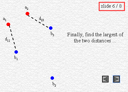 More formally, Hausdorff distance from set A to set B is a maximin function, defined as