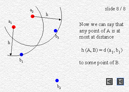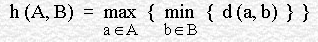 h(B,A)=max(b∈B)min(a∈A)‖b-a‖ (3)