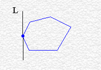 直线L通过多边形P中的某个点, 如果多边形P的内部区域完全在L的一侧, 则该L是一条支撑线