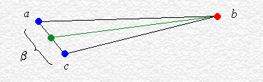 计算垂直于穿过b1,b2的直线,且经过点a的位置c。