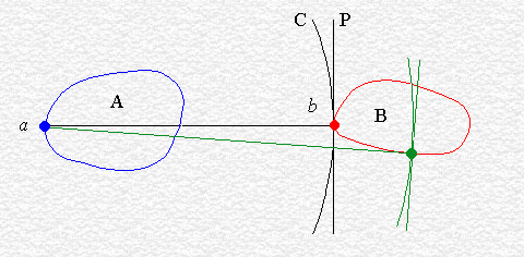 引理(1.2):The perpendicular to ab at b is a supporting line of B, and a and B are on different sides relative to that line