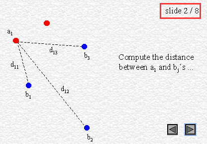 To findH(A, B), the algorithm needs to executed twice ; the total complexity for computing Hausdorff distance then stays linear to O(n+m).