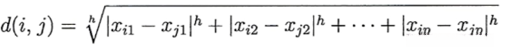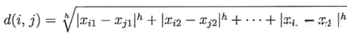 d(I,j) = (p-m) / p ; 其中m是匹配次数,p是属性总数;