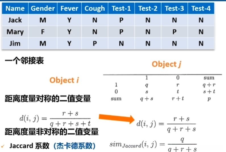 (常见的仅包含两种状态的数据),其中二元型数据又被划分为对称二元型数据(其两种状态的数量)