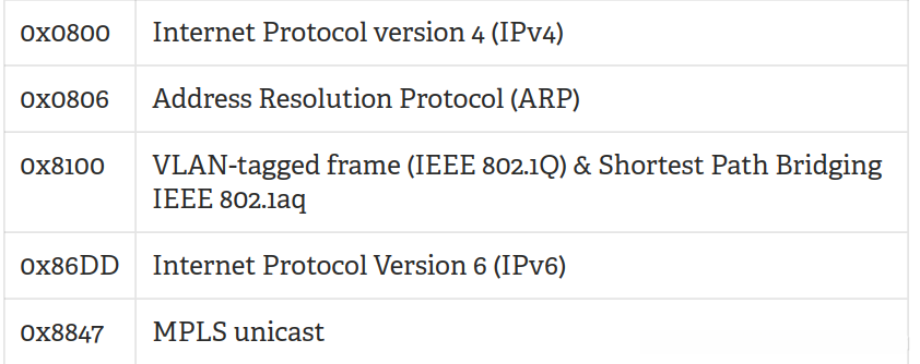 EtherType Field:指明数据中的协议(网络层(上层)的协议)