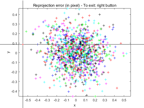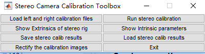 Upon clicking the 'Run stereo calibration' key on the interface shown in Figure 1, Matlab command window outputs the intrinsic parameters of left and right cameras along with **the optimized extrinsic parameters of the system.