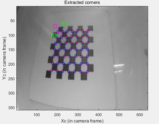 重新提取网格角点,完成内参数标定后,在标定工具箱操作面板点击Recomp. corners