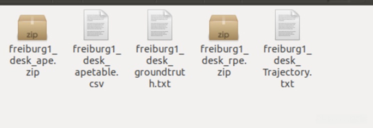 6、对ape的结果freiburg1_desk_ape.zip进行比较。 (在第2步用touch创建的freiburg1_desk_ape.zip,其创建的位置可以自己定)