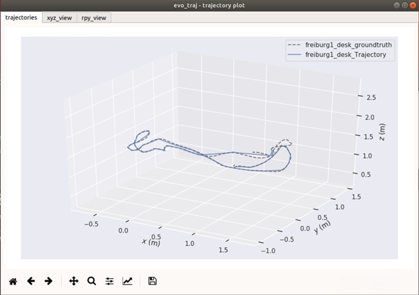 evo_traj tum freiburg1_desk_Trajectory.txt --ref=freiburg1_desk_groundtruth.txt -p --plot -s --correct_scale -a –align