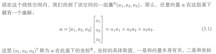 系与基的选取有关。其中基的长度为1,是空间中一组线性无关的向量。