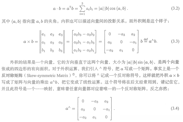 借助反对称符号^的作用,使得向量的外积表现为一个矩阵与一个列向量相乘的线性运算行为。