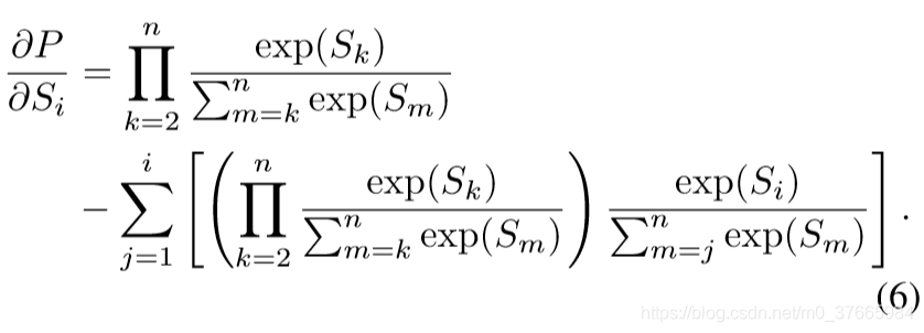 (6)式为某一个排列对Si(query和某一个后选样本i的相似度)的导数