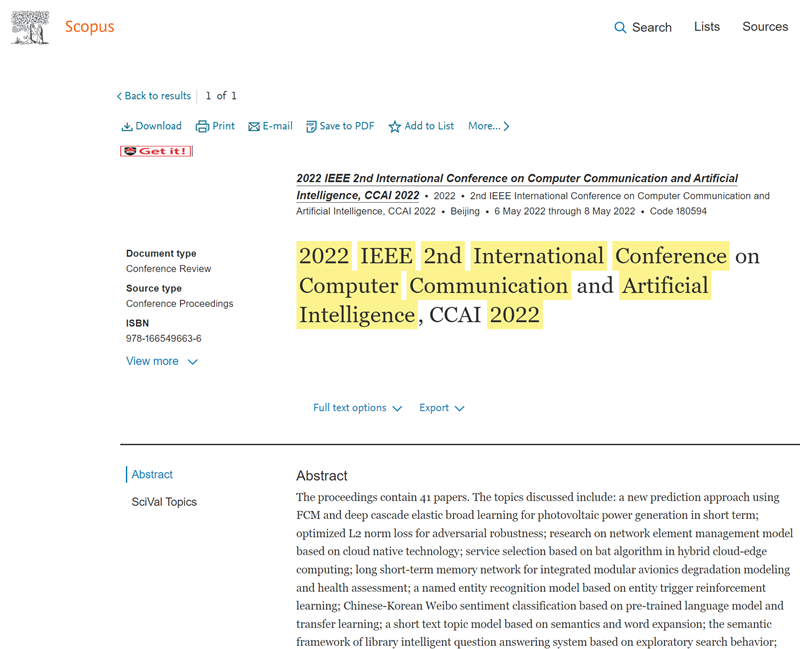 CCAI 2021-2023论文集都已成功被IEEE出版,并会后被EI Compendex 和 Scopus检索。