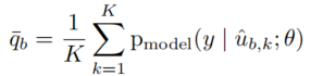 对于的每个未标记的训练数据,MixMatch 使用模型的预测为样本的生成一个“guess”标签,这个“guess”标签被用于无监督损失计算。具体地,我们计算了该模型预测的分类分布在所有 K 个增量上的平均值。如下: