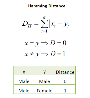 (4)汉明距离(Hamming):在分类实例中应用该方法具有必要性。当数据集包含数值型和分类型变量时,则需考虑对数值型特征进行归一化处理的问题。