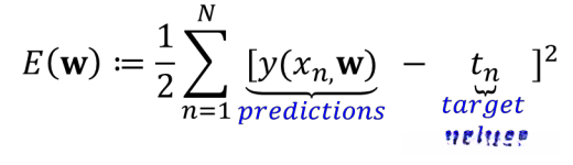 如何确定W:(W能最小化目标值二号预测值之间的误差 )