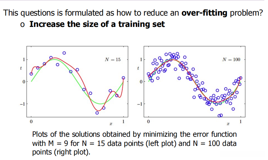 b、增加模型的复杂度(增加M的值)提高拟合程度,避免欠拟合。
