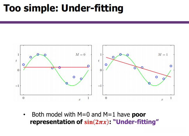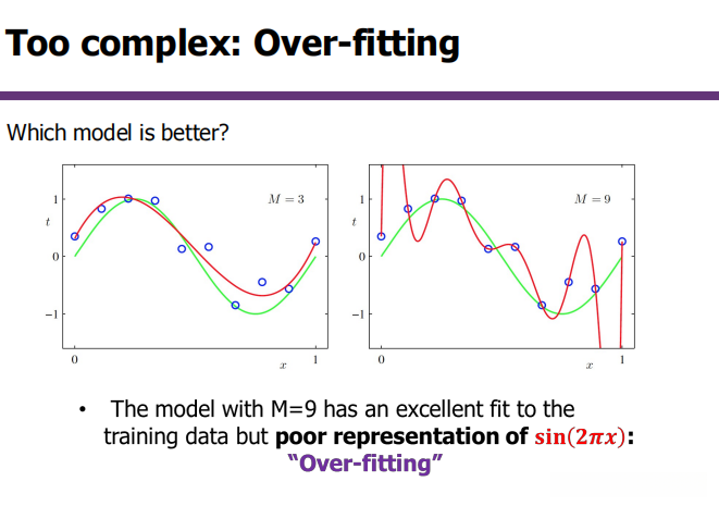 下面这个一般是M太大导致函数太复杂而过拟合。