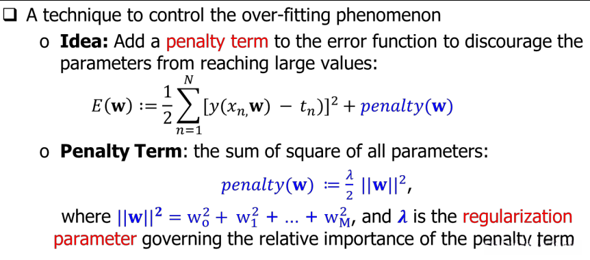 b、引入正则项(Regularization),计算关于权重参数w的损失函数及其最小值;当权重参数w较小时;能够更好地实现对数据的拟合。