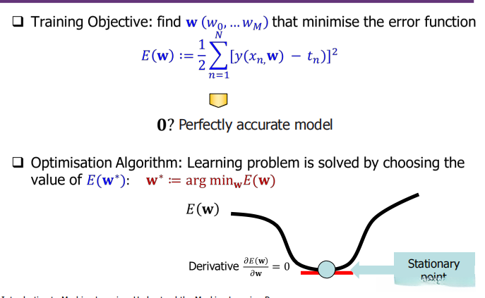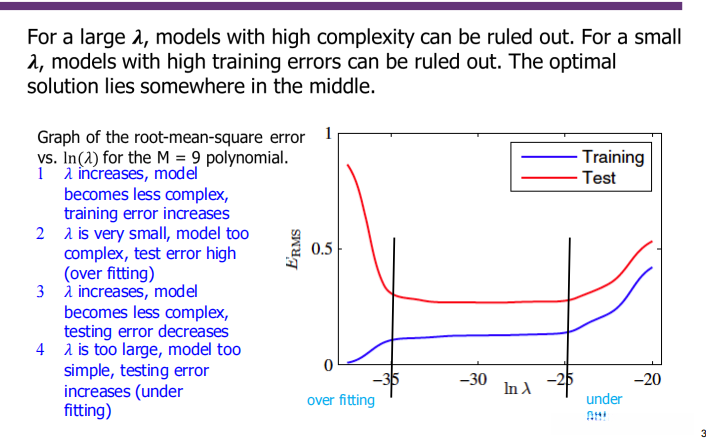 (1) 必须设定模型的参数。(2)必须使模型适应训练的目标,并优化其与真实目标值之间的误差函数。(3)在防止过拟合的同时,需注意多个因素包括训练顺序(M值)以及正则化系数(λ值)。