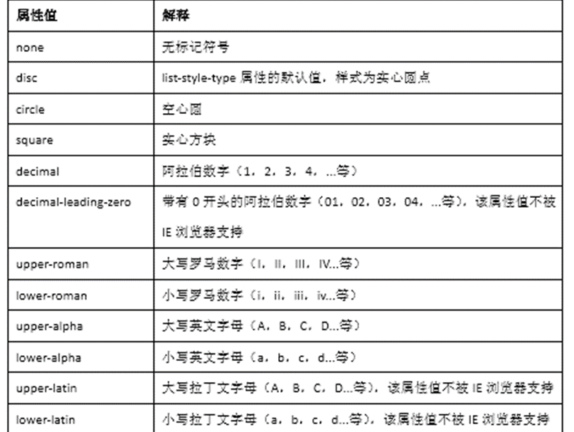 1. 样式类型list-style-type