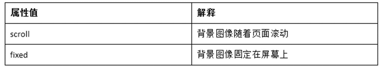 CSS中的 background-attachment属性用于设置背景图像是固定在屏幕上还是随着页面滚动。该属性有两种取值。