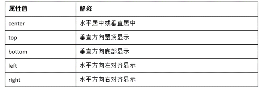 关键字在垂直方向的主要有top、center、bottom。