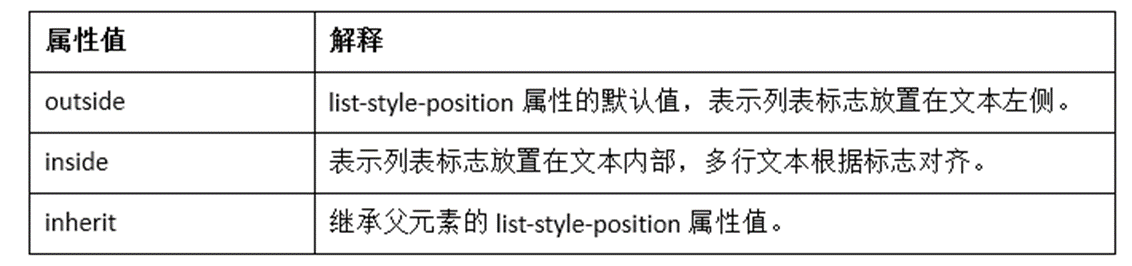 CSS中的list-style-position属性用于定义列表标志的位置,有3种属性值。