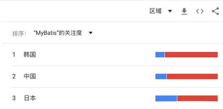 再从下面这个对比来看,MyBatis 的关注主要集中在中日韩。